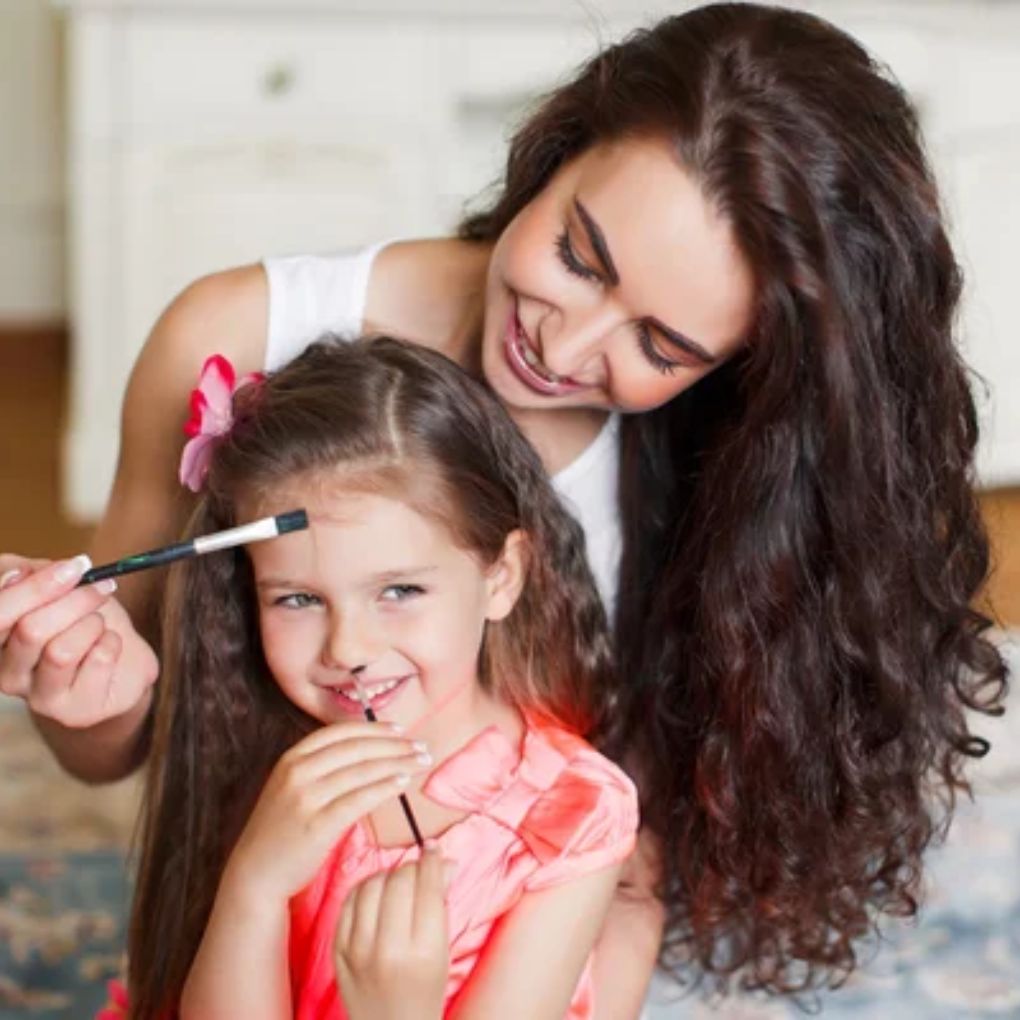 Gezellige sessie voor moeders en dochters om samen make-up technieken te leren.